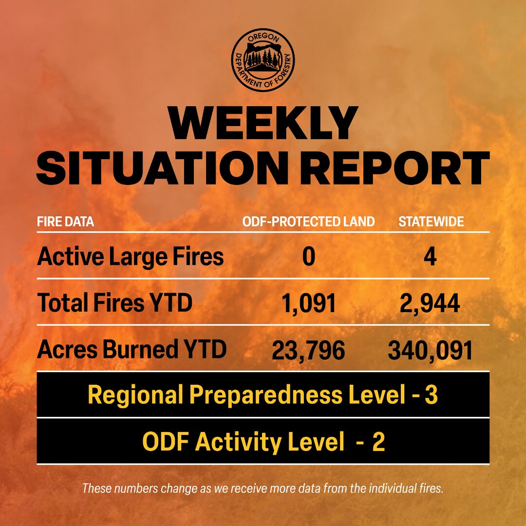 Prevention: Even with lower temperatures and intermittent rain, fuels remain very dry with the potential for a fire to start and grow. Thus far in the season, there have been 1,091 fires on ODF-protected lands – 671 of which have been human-caused. By taking a few extra steps, you can help prevent the next wildfire in Oregon.